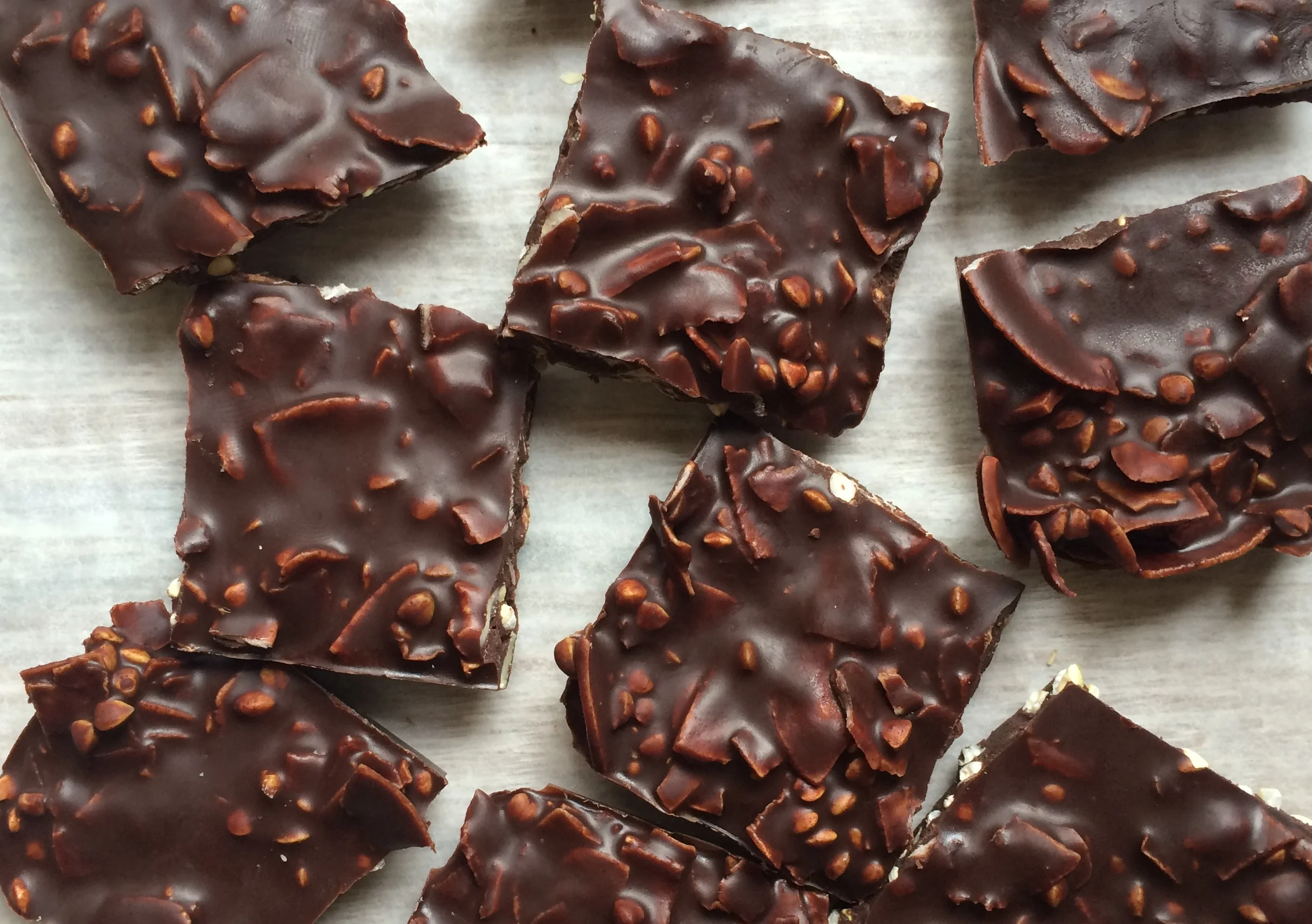 You can swap any ingredients you like to go in the chocolate from goji berries, cranberries, dried blueberries to cashews, chilli, sea salt, mint oil or even just enjoy it plain.