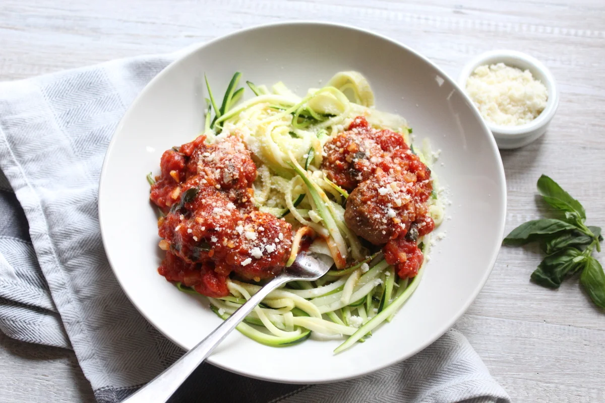 Spaghetti Bolognese: serve ½ cup pasta with 1/3 cup meat sauce on one half of your plate, and then fill the other half of your plate with a mixed salad OR try zucchini noodles to mix in with the pasta and add a heap of grated veggies to your meat sauce.