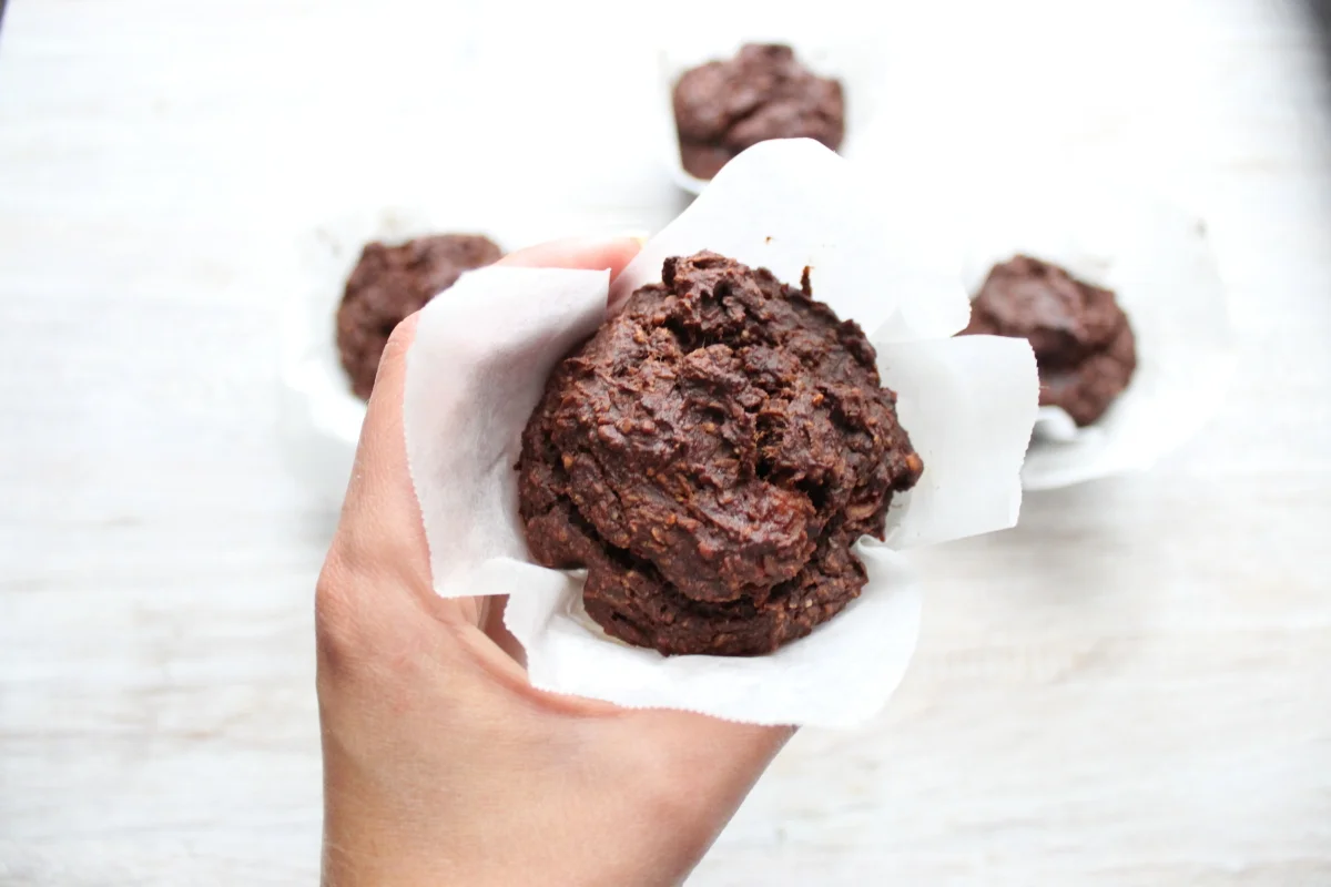 Combine the coconut, almond meal, baking powder, salt, cacao powder, protein powder and cinnamon in a large bowl. Beat the eggs and then add to the mixture with the coconut oil mashed banana and sweet potato, combining well.