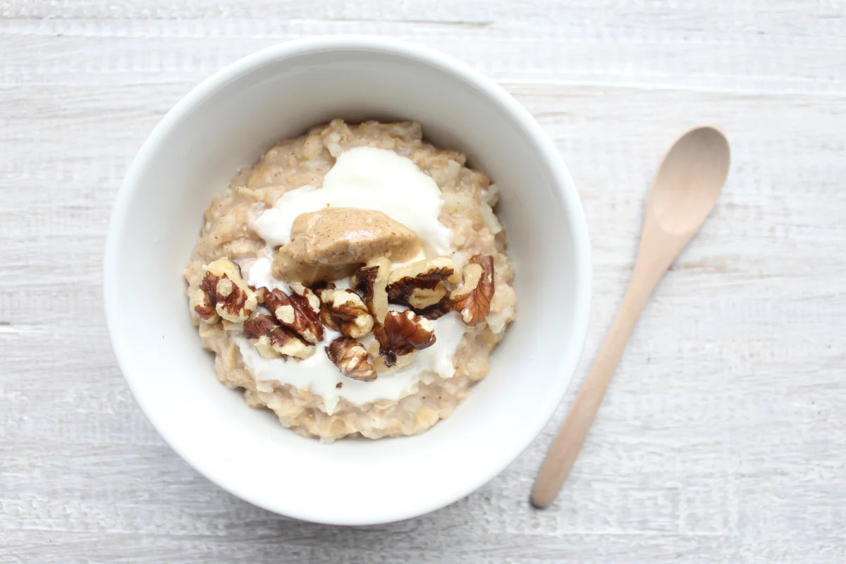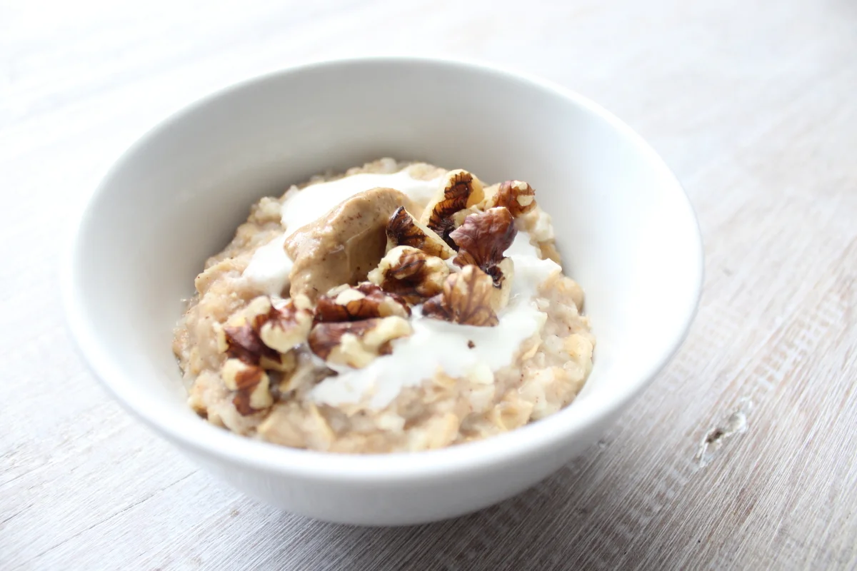 Toppings: greek yoghurt, walnuts and toasted hazelnut butter