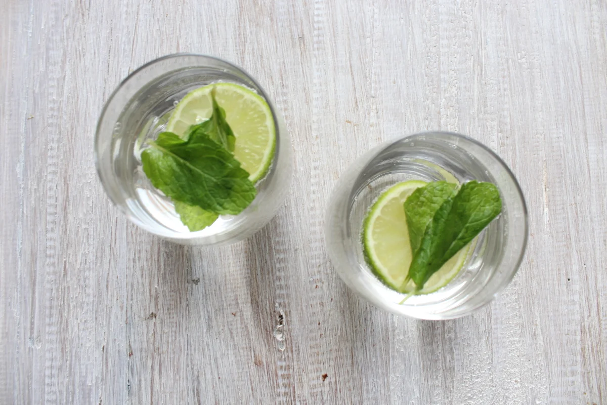 Mineral or soda water with lemongrass and ginger / cucumber and mint / lime, ginger and mint / kaffir lime and lemongrass / strawberry and basil / lemon and ginger / grapefruit / cucumber and raspberry / blueberry and thyme.