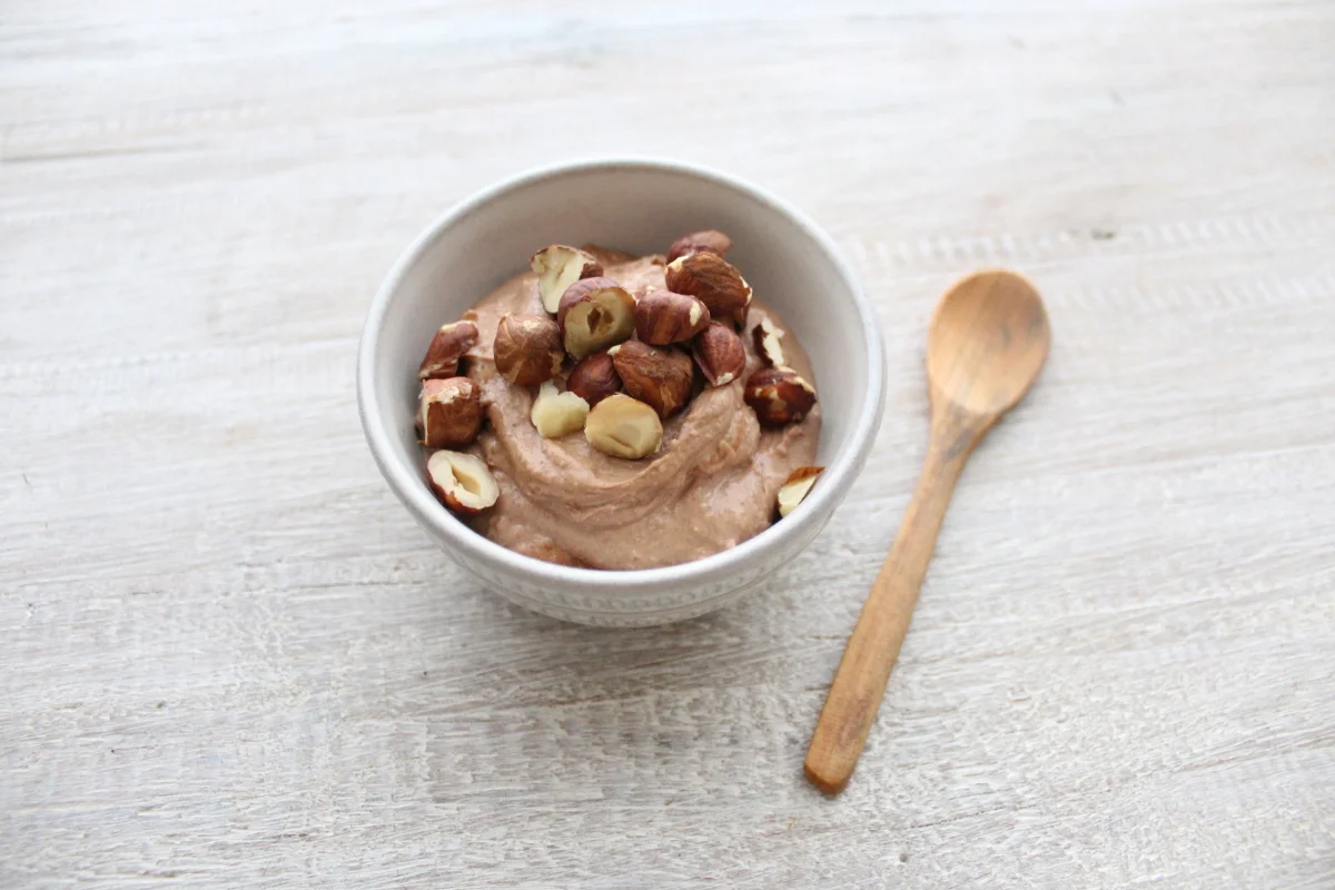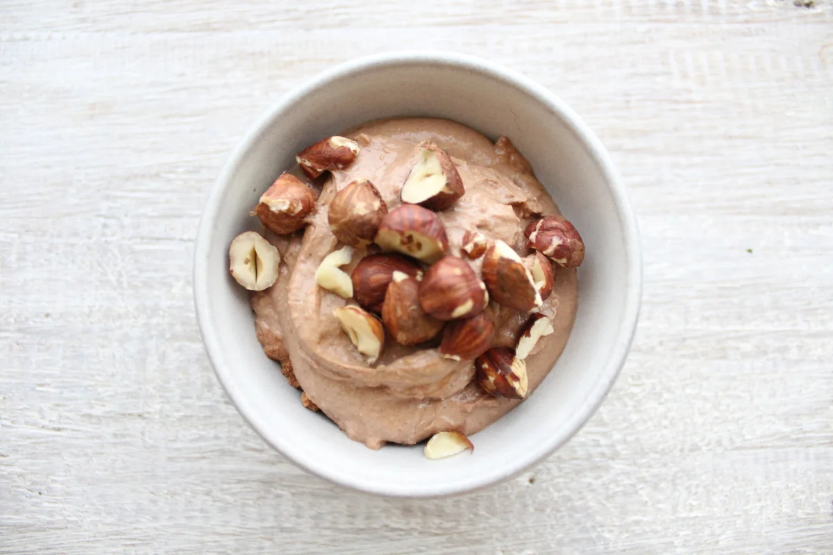 This recipe however can barely be called a sweet and is so nutritious I would actually eat it for breakfast. It’s packed with good fats, protein and my all time favourite ingredient cacao for an anti-oxidant and polyphenol boost. I made my own hazelnut butter by simply lightly roasting the nuts and blitzing them until they released their oil.