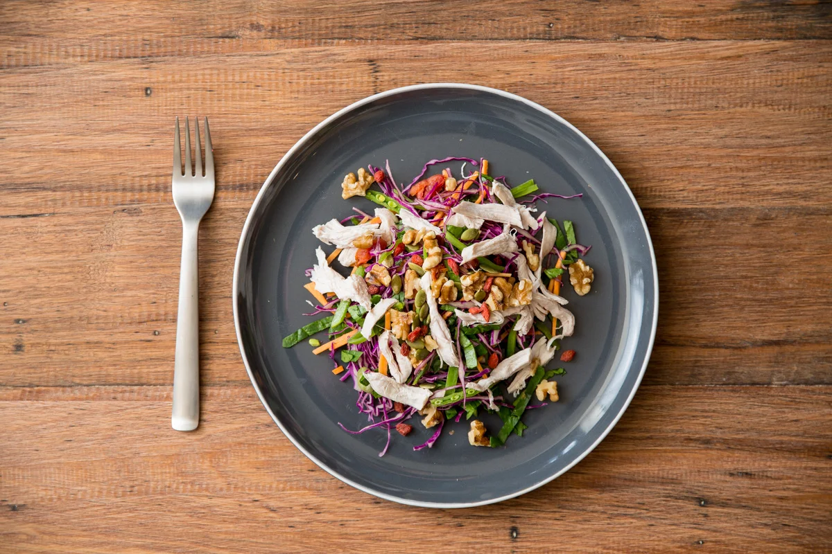 This gut friendly recipe features kefir in a creamy slaw to pair with delicious crispy chicken.